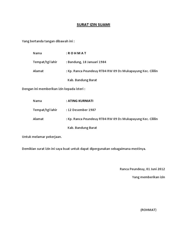 Bekerja Contoh Surat Izin Suami : Contoh Surat Keterangan Penghasilan Dan Tanggungan Keluarga Belajar Office / Diberitahukan kepada pekerja migran indonesia (pmi) program g to g ke korea selatan.